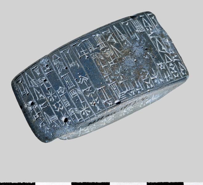 - The lapis-lazuli tablet is inscribed with an inscription of Amar-Suen, the third king of the Third Dynasty of Ur (2046-2038 BC). The hand copy published here stems from an anonymous colleague, who possibly in 1957 visited Medelhavsmuseet, copied three cuneiform texts and transliterated four. Because several details, including the name of the author, were missing, the manuscript was not possible to publish. In the publication by H. Steible, 5 other stone tablets with the same text are listed. For none of them is there any known provenance. The inscription describes how Amar-Suen, king of Ur, constructed a building called Gipar in the town Karzida outside the city Ur. The Gipar was the residence of the en-priestess Enagazianna of the moon-god Nanna. Another Gipar was situated in the center of the city Ur. For three of the published duplicates, it has sometimes been suggested that they may be modern fakes. The same may also be assumed for MM 1957:4, because of the many words and even signs, which are divided on two lines. However, these indications of bad writings do not necessarily prove that it is a fake, and it cannot be excluded that all exemplars are ancient. Those tablets, which are authentic, were possibly one principle placed in the walls of the Gipar, or in connexion with this building. Our tablet, however, seems to have been secondarily pierced for hanging. Therefore the tablet may at a later stage have functioned as an amulet, if it is ancient. Translation: “For the god Nanna of (the town) Karzida, his king, Amar-Suen, whose name the god Enlil mentioned in Nippur, provider of the temple of the god Enlil, righteous god of the land, king of Ur, king of the four horizons – from the past there was no Gipar (-building) in (the town) Karzida, no en-priestess lived (there) – Amar-Suen, the beloved son of the god Nanna, built for his beloved god Nanna at (the town) Karzida the Gipar (-building). Enagazianna, his (=the god Nanna’s) beloved en-priestess, he let To him (=the god Nanna). (Therefor) Amar-Suen may have long life.”
