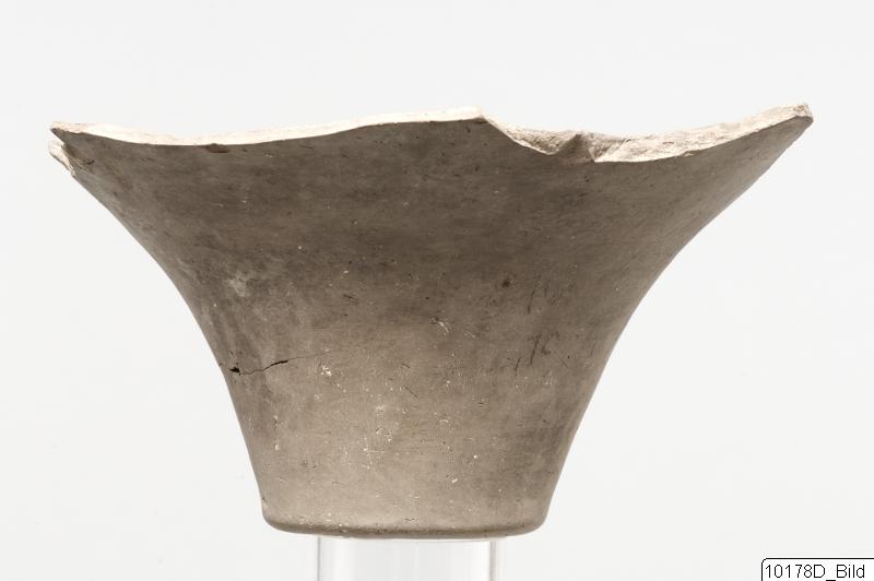 - Lower part of bowl. Splaying sides. Cylindrical lower body and foot. Flat base.