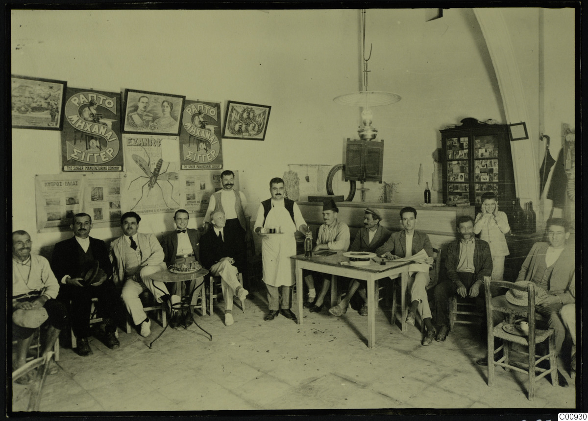 Svenska Cypernexpeditionen, gruppbild, kaffe, fika, personer, skåp, tavlor