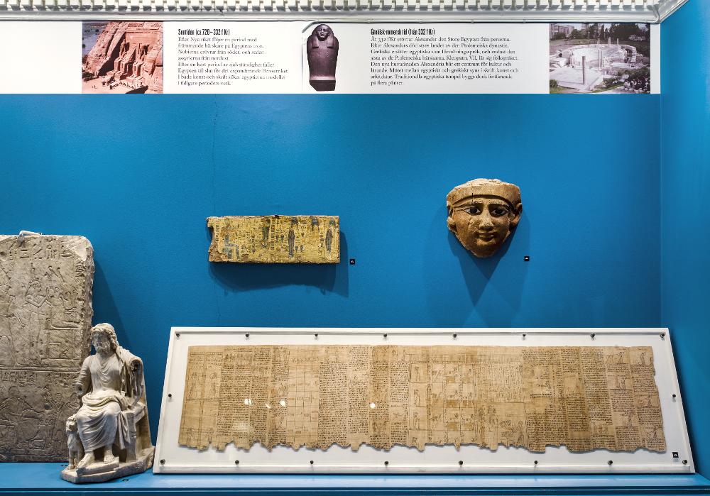 The Egyptian exhibition shows various aspects of life in Pharaonic Egypt from 3000 BC to the Christian era. There are also many objects from the prehistoric period, starting around 5000 BC. Most of the objects came to Sweden in the late 19:century, and have been donated to the museum from private collections.