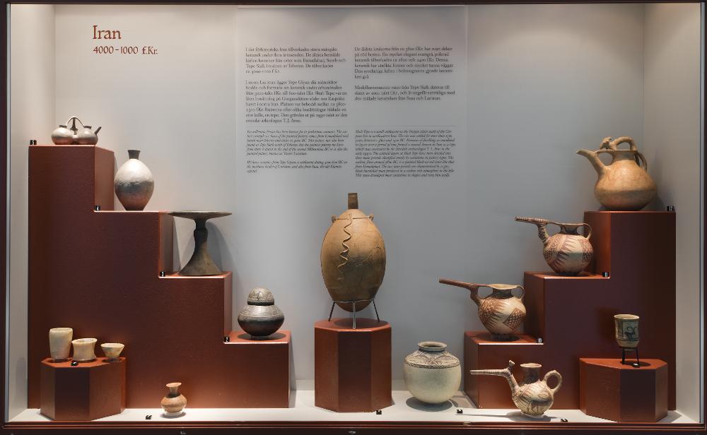 Among the highlights in the Near Eastern collection, are the Bronze Age objects found by professor T Arne, during the Swedish excavations of 1932 in Shah Tepe in northeastern Iran.