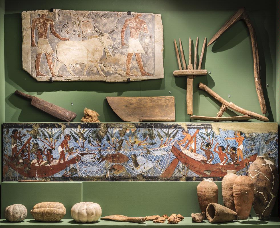 In the gardens were cultivated both doum and date palm trees as well as olives, pomegranates, melons, sycamore figs, grapes and various types of vegetables.