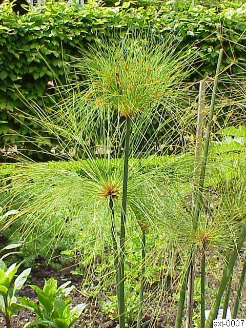 - Cyperus papyrus, växten som man gör papyrus av (Foto: Kurt Stüber, Wikimedia Commons).