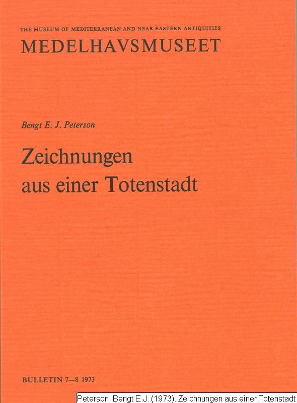 Peterson, Bengt E.J. (1973) "Zeichnungen aus einer Totenstadt" in Medelhavsmuseet Bulletin no 7-8 (1973).