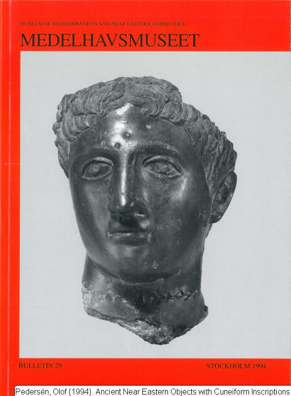 Marino-Hultman, Pat et al (1994) "Notes from the Graeco-Roman Department" in Medelhavsmuseet Bulletin no 29 (1995), p. 67.