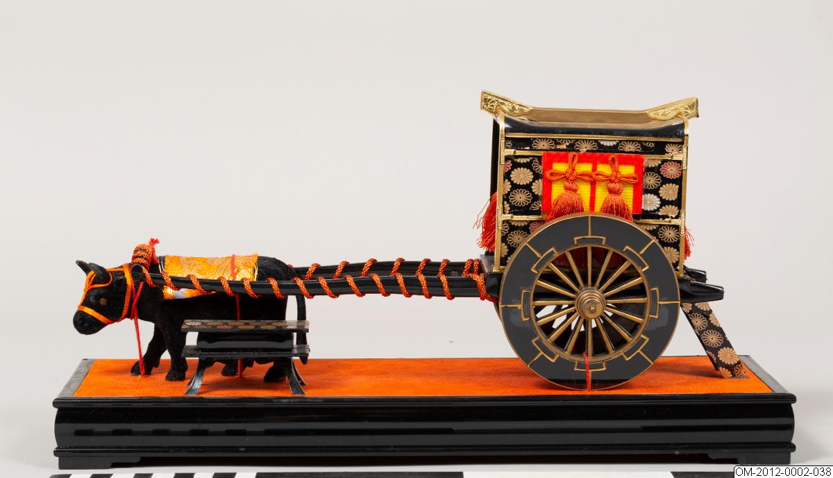 Uppsättning med en vagn dragen av en oxe. En typ av fordon som föredrogs av Heian-periodens adel (år 794-1185).