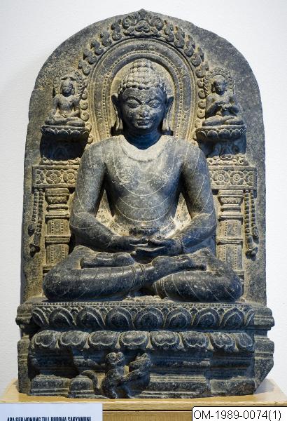 - Skulptur,Buddha,svart sten,bihar,sannolikt Kurkihar,Indien. Päla dynastin ca. 1000 .
