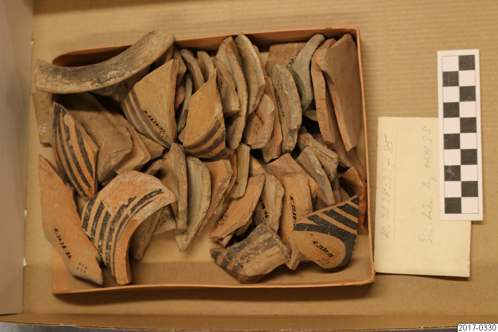 - Låda med skärvor från Anderssons utgrävningar, Xindian, Gansu-11-9b.