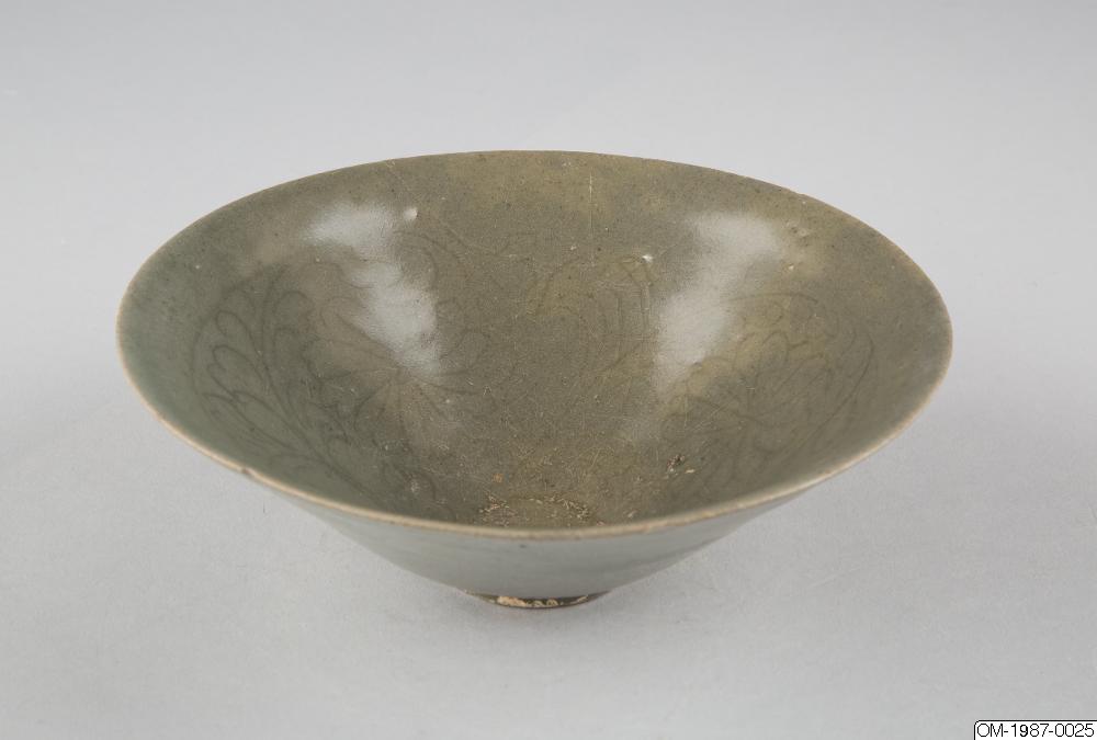 This type of bowls was used to drink powdered tea, also known as Macha (Korean: malcha), which was popular among the elite in the early Goryeo period. The tea leaves were ground to a fine powder, and after water was added, whipped until bubbles occurred. The wide mouth and the conical shape of the tea bowl were suitable for the preparation and consumption of this type of tea.