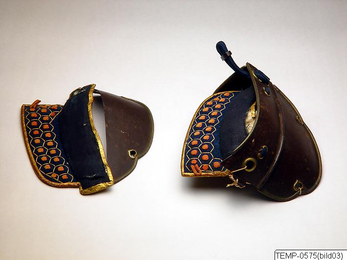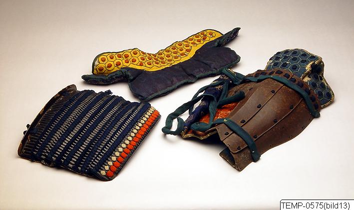 - Arm- eller benskydd till rustning, metall/ textil/ läder. Japan.