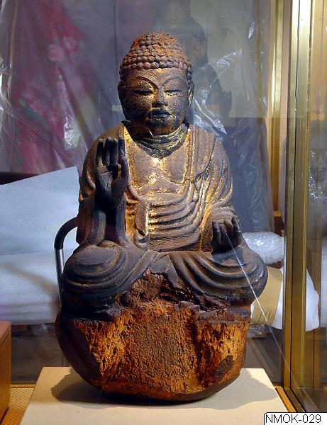 Skulpturen i form av en sittande Buddha är en av de äldsta japanska buddhistiska skulpturerna på Östasiatiska museet. Ungefär samtida med skulpturens tillkomsttid verkade Kukai, postumt känd som Kobo-Daishi (774-835). Kukai var grundare av den esoteriska shingon-sekten inom den japanska buddhismen.