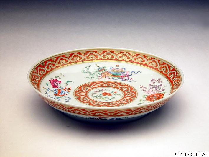 Porslin med dekor i emaljfärger och guld.