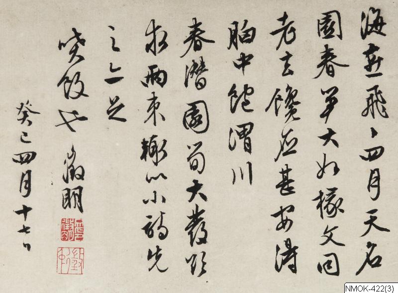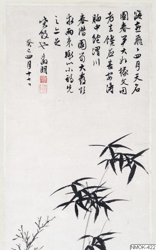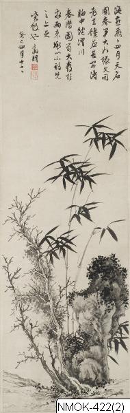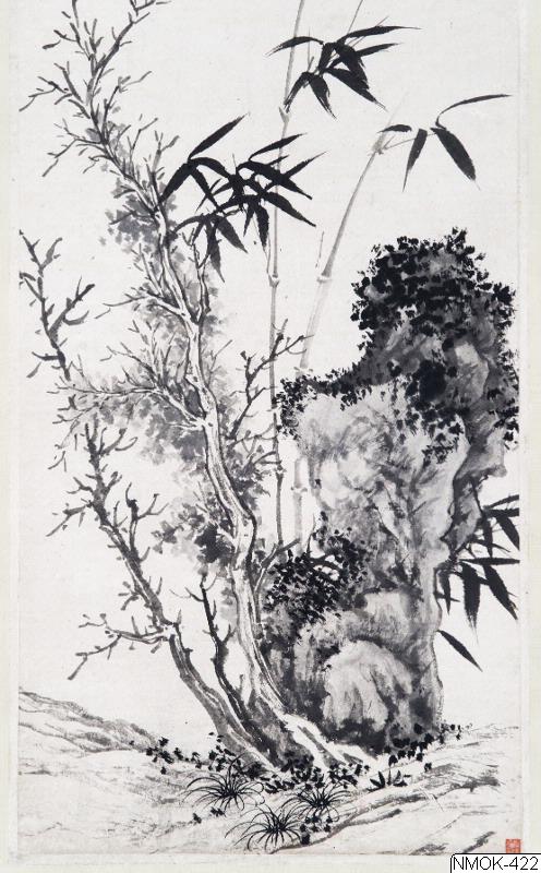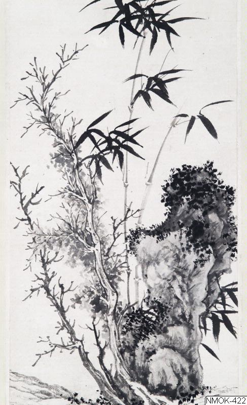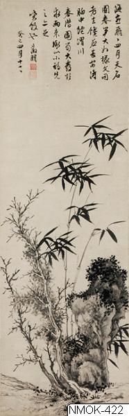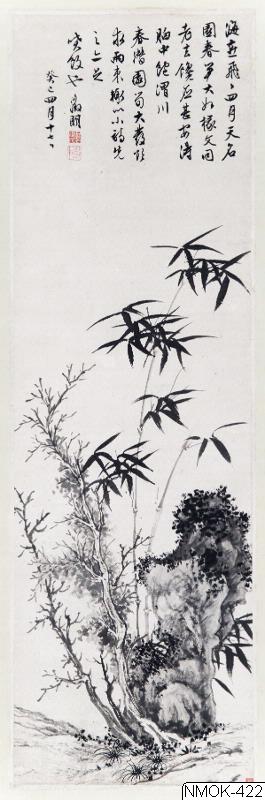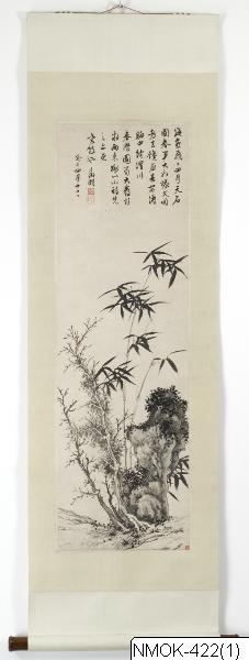 - Målning, vertikalrulle, tusch på papper, bambu o sten, Kina.