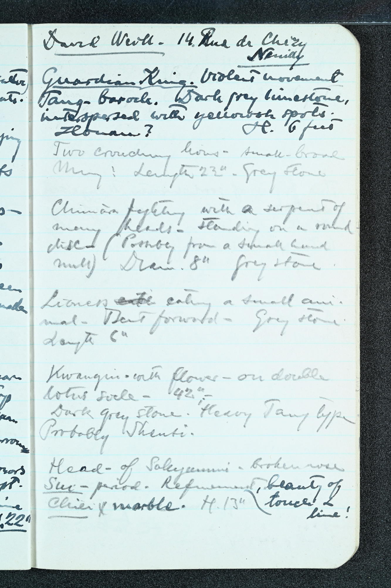 - Noteringar om kinesisk konst, u.å. - engelska adresser, British Museum, anteckningar, Freer Museum Washington