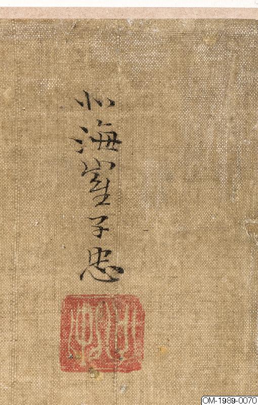 I en inskription på albumbladets motstående sida av Qing-connoisseuren Li Zuoxian har motivet identifierats som "de tre sura" (sansuan tu) . "De tre sura" är berättelsen om hur Su Dongpo och Huang Tingjian, två av Song-dynastins ledande intellektuella, tillsammans med monken Foyin, smakte på vinäger gjort på persikoblommor. Det är ett ovanligt motiv i kinesiskt måleri, den stora Yuan-målaren Zhao Mengfu skall , enligt en källa ha målat detta motiv, men denna målning är inte bevarad för eftervärlden. (Xuehai yudi, citerad i Zhongwen da cidian. Taibei 1973, vol.1, s. 267) I motsättning till vad historien berättar är det inte persikoblom-vinäger de tre lärda männen smakar, de biter bokstavligt talad i den sura frukten. Man frågar sig om orsaken till denna ikonografiska förändring - möjligtvis symboliserade den sura smaken av omogna persikor den sura eftersmak som följde det fåfänga sökandet efter odödlighet - persikor var en av de vanligaste symbolerna för odödlighet.