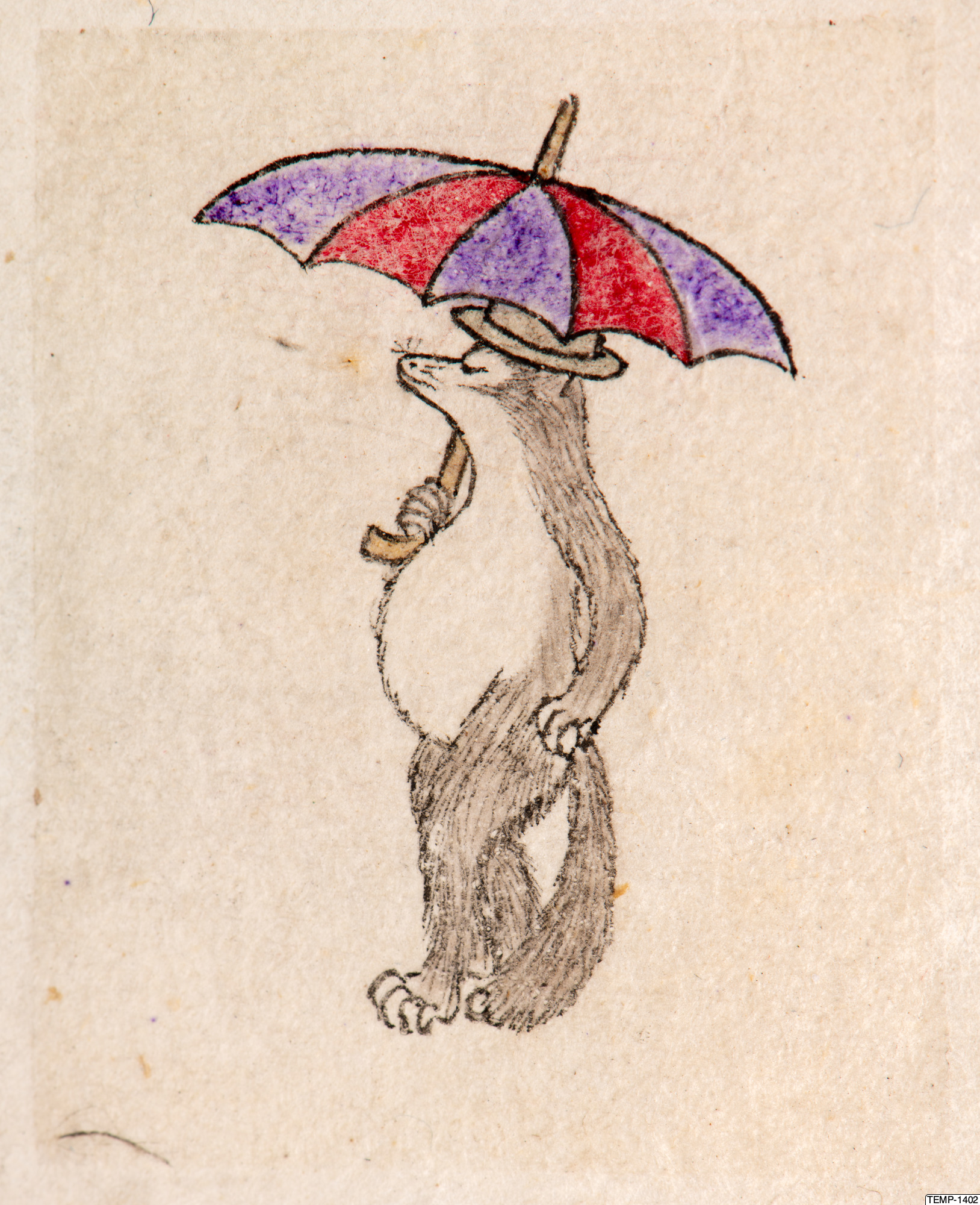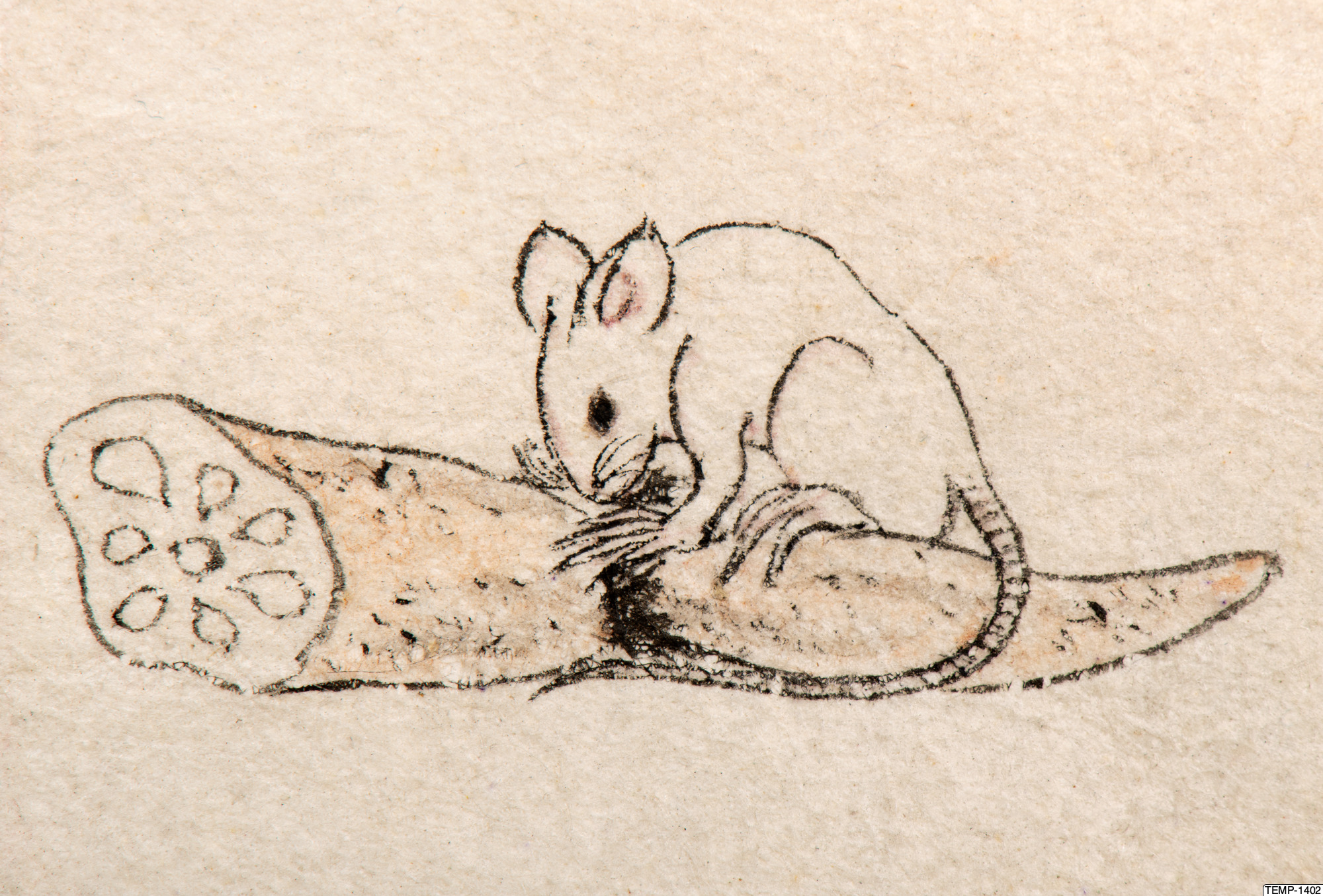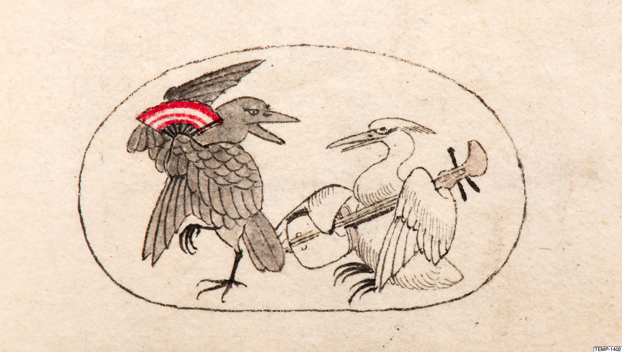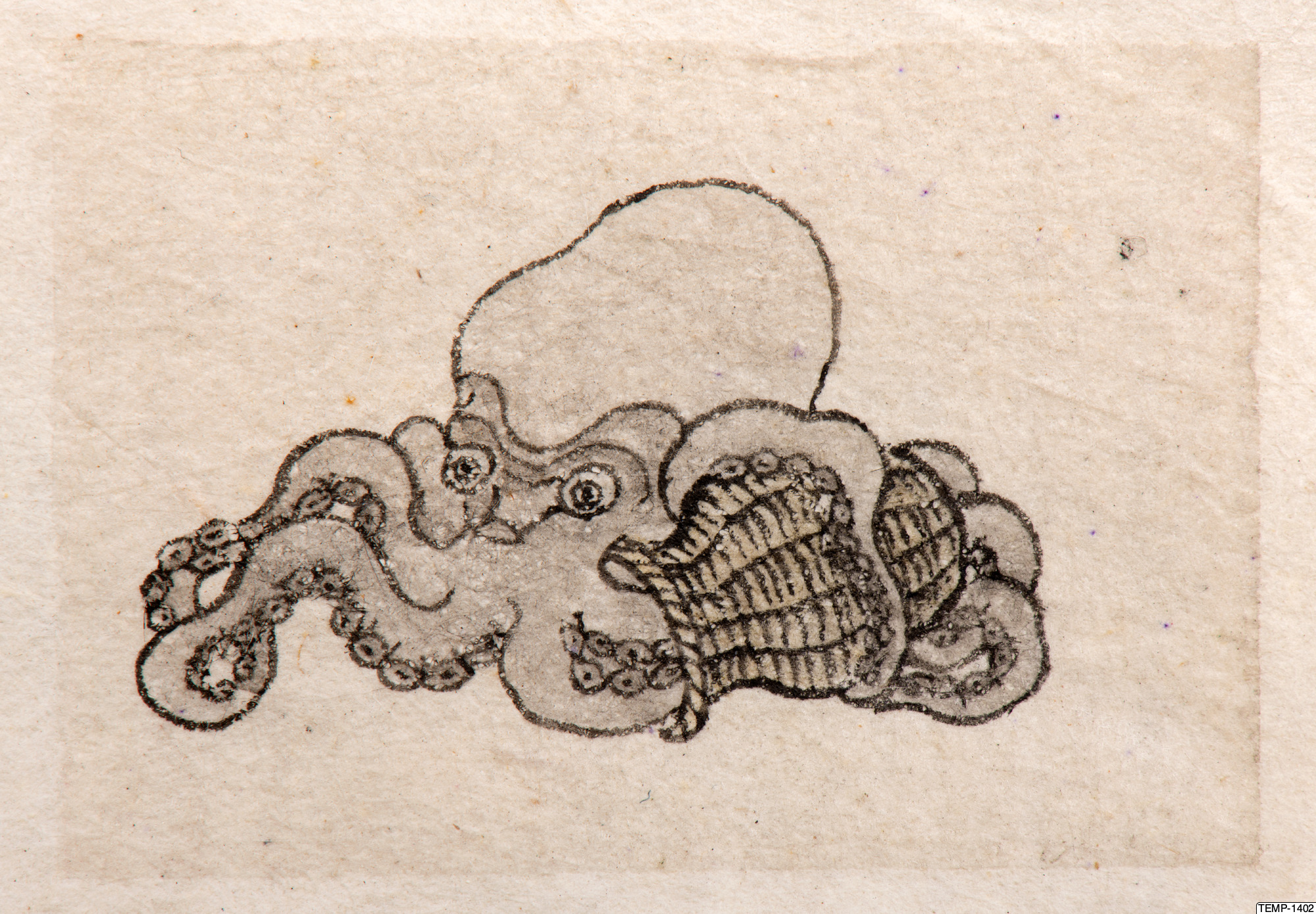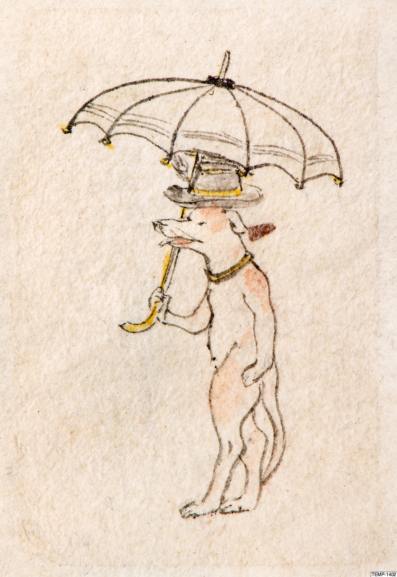 "Skissbok med teckningar av yokaier, blandade med andra motiv som blommor och fåglar. Bilderna ser ut att vara förlagor till hantverk som netsuke eller svärdsfästen. Troligtvis Meiji-perioden (1868-1912)." (utställningstext, Yokai 2024, Etnografiska museet)