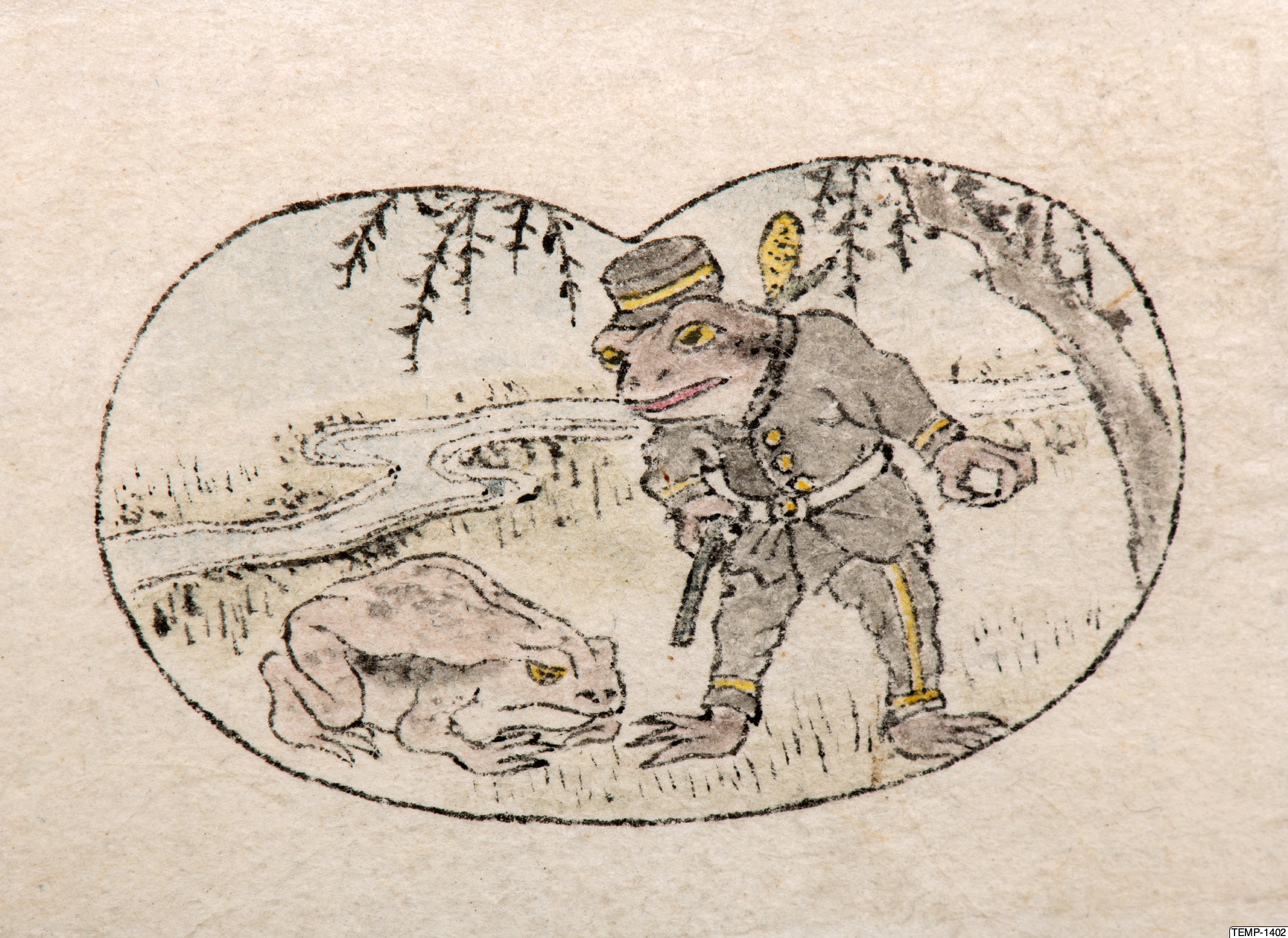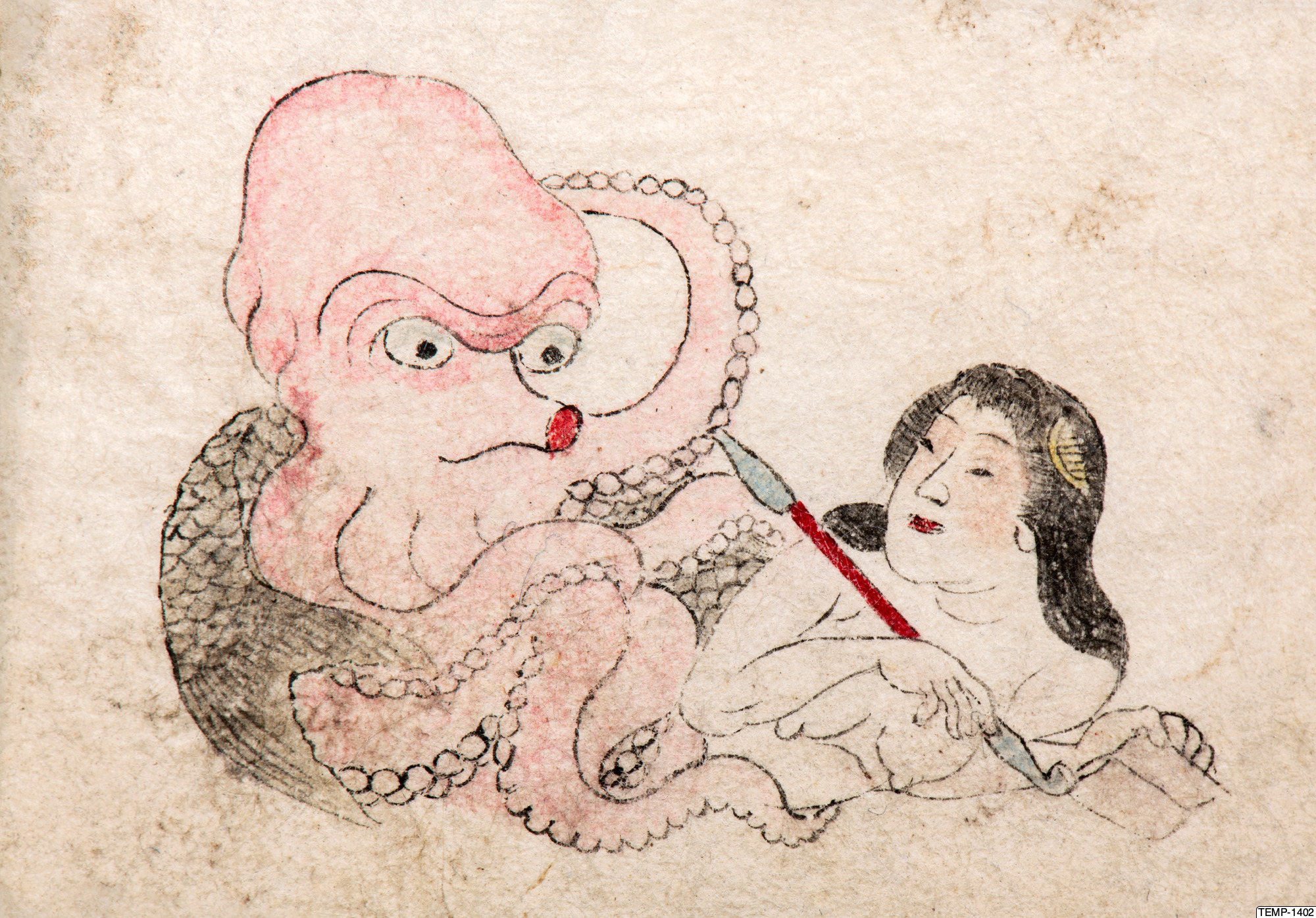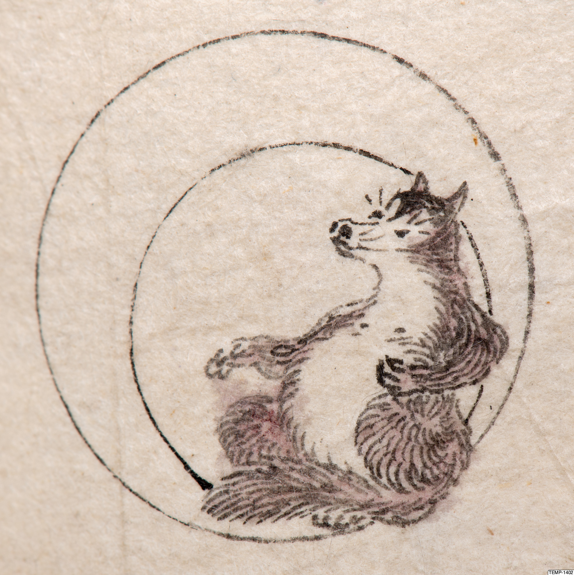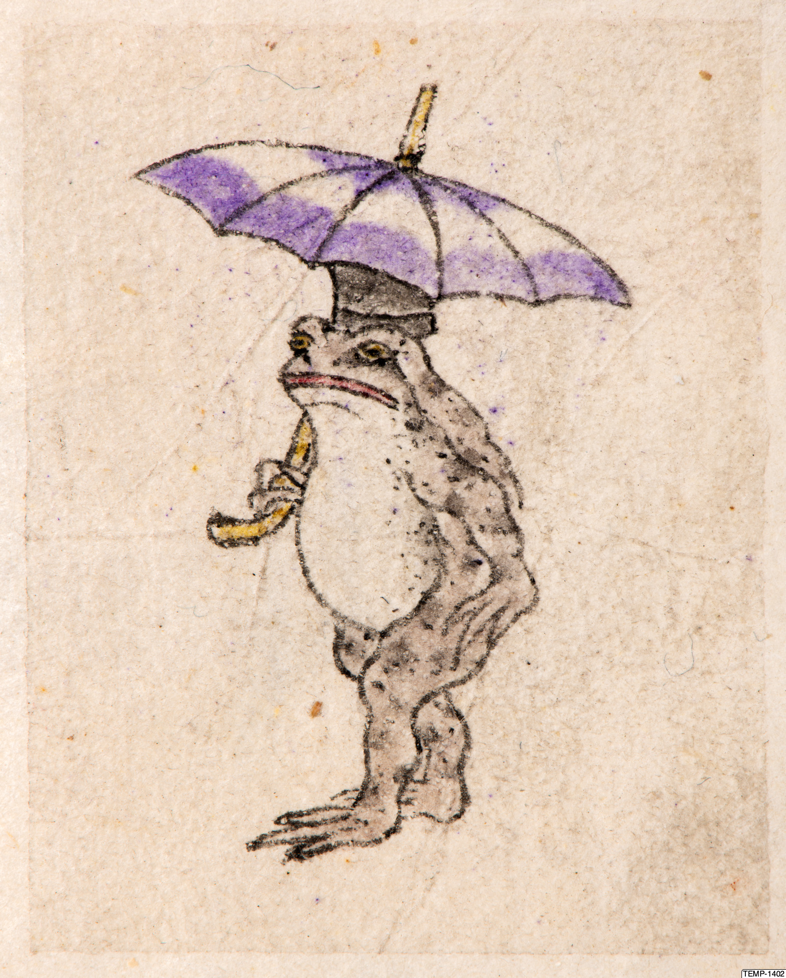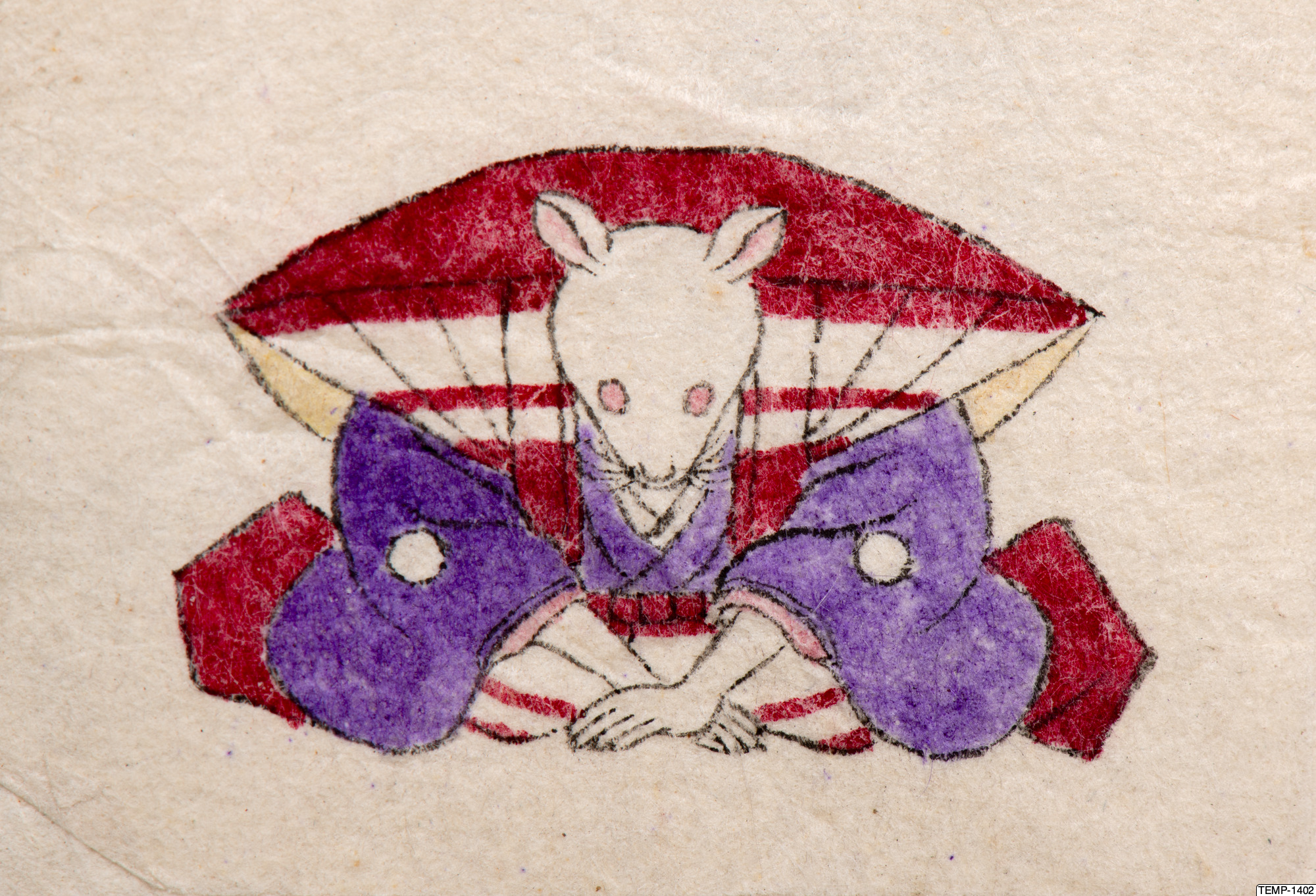 "Skissbok med teckningar av yokaier, blandade med andra motiv som blommor och fåglar. Bilderna ser ut att vara förlagor till hantverk som netsuke eller svärdsfästen. Troligtvis Meiji-perioden (1868-1912)." (utställningstext, Yokai 2024, Etnografiska museet)