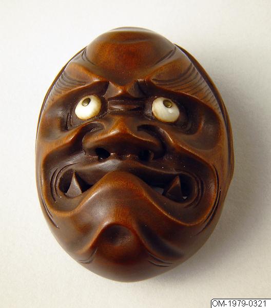 Netsuke i form av en demonmask, Oni, en demon. Signerad Ryuzan. Sent 1800-tal.