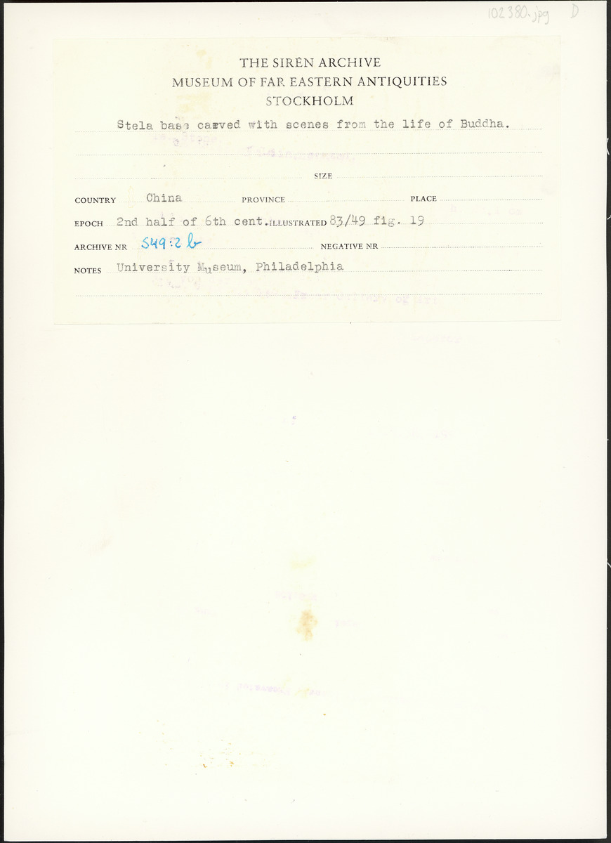 - Katalogkort ur Östasiatiska museets arkiv, box 47.