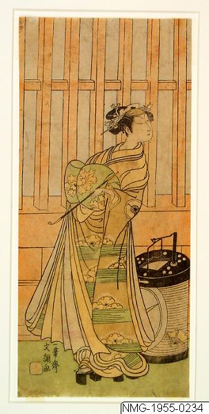 Träsnitt av Ippitsusai Buncho. Enligt kataloguppgifter Iwai Hanshiro IV i en kvinnoroll. 1771.