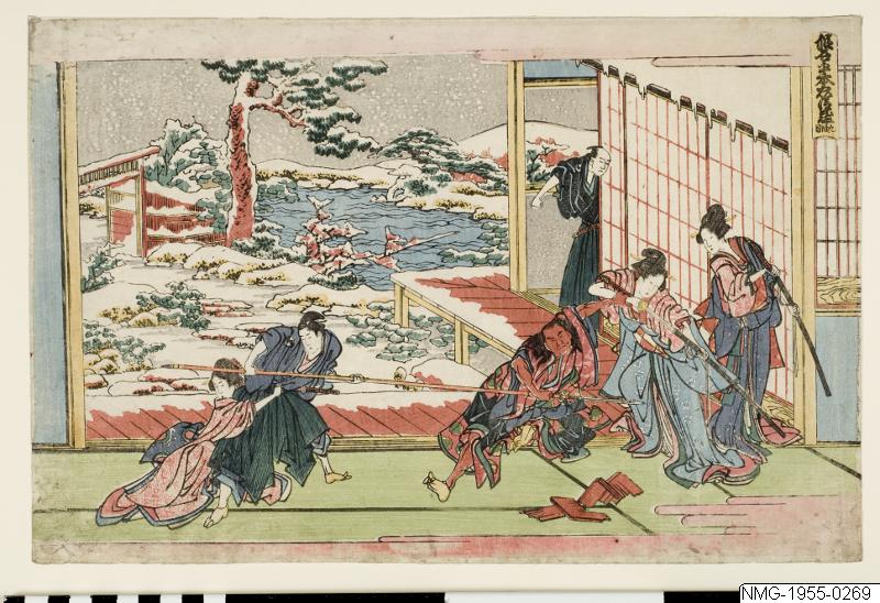 Scen ur Chushingura-dramat (De 47 herrelösa samurajerna). Akt IX. 1806.