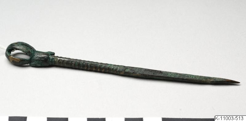 Nål eller mejsel med genombruten knopp. Knoppen trasig.