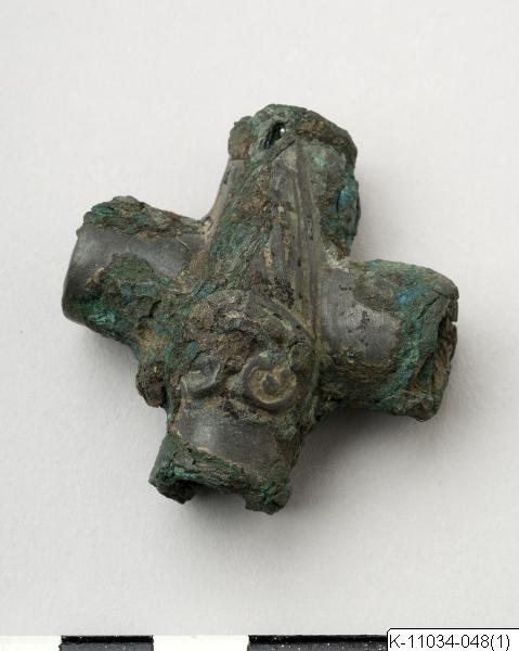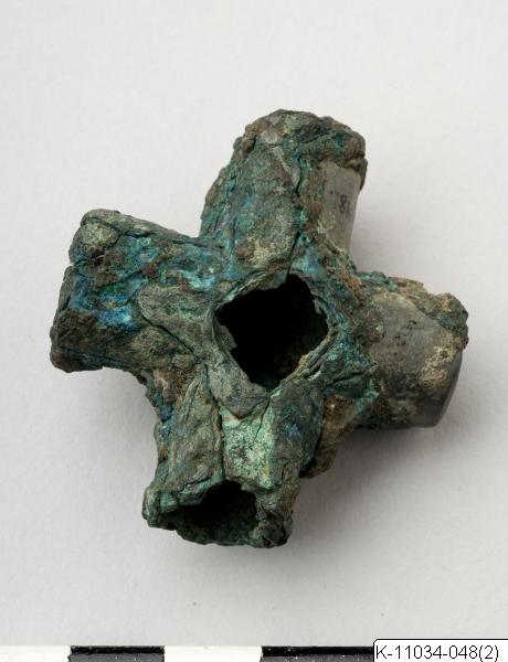 - Korsformad tub. Dekorerad med en cikada i relief.