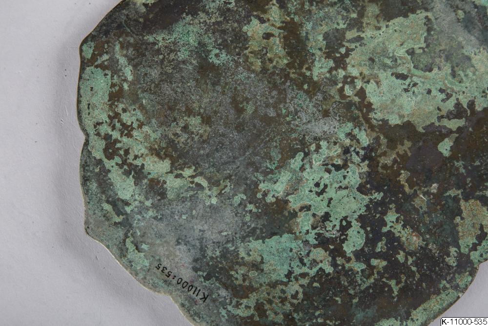 Spegelns spegelyta är på den dekorerade sidans baksida men är inte längre blank, på grund av oxidering. Speglar av den här typen var en allmänt använd toalettartikel under Goryeo (918-1392).