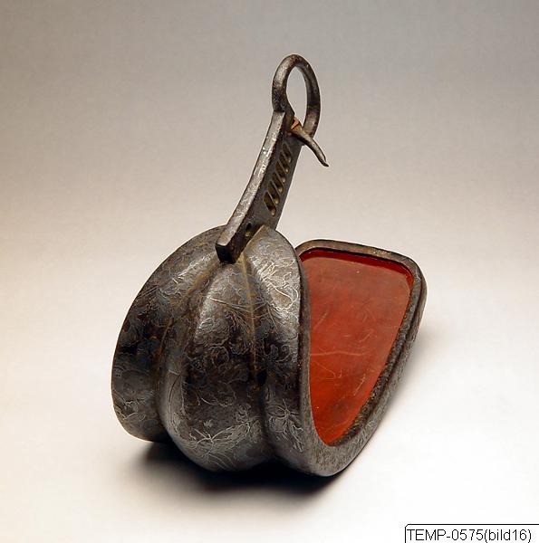 Skyddsmask (del till samurajrustning). Enligt en lapp “Udda delar till japansk rustning funnen på PeO´s rum”.