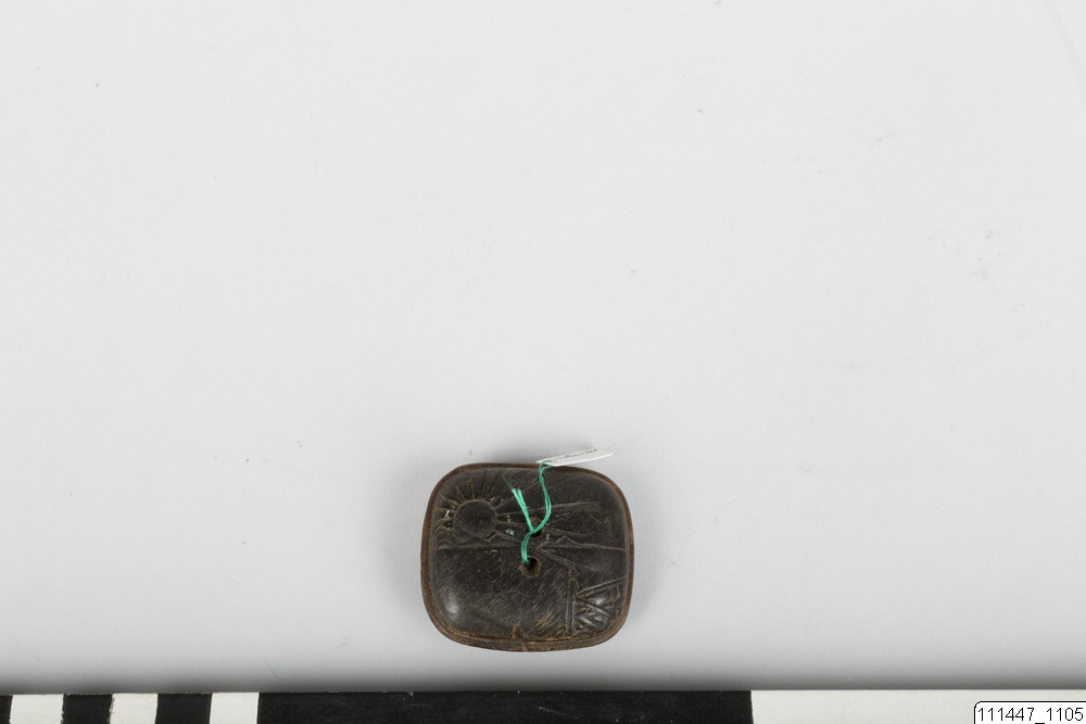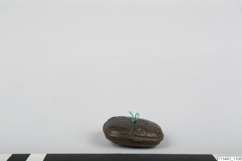Netsuke-föremålets funktion består i att vara en motvikt till de "hängande saker" (sagemono) som bars till kimonon av männen. Vanliga hängande saker var olika dosor, till exempel medicindosor (inro) och tobakspungar. Netsuke betyder ungefär "fästa rot" och tidiga netsuke (före sent 1600-tal) var förmodligen naturliga, obearbetade rötter och liknande. Från 1700-talet gjordes de mer föreställande och ofta i trä eller elfenben. Så småningom började konstnärerna att signera sina netsuke. (Baserad på text från utställningen Japan. Föremål och bilder berättar. 2011)./PH