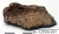 Enligt K-katalogen nr 15: “SKärva med zigzagornament. Dong Mau”. Enligt samma katalog: “K 12563 - Samling av keramik och stenföremål utgrävda på förhistoriska fyndplatser i Tonkin våren 1938 av Andersson, Tran och Colani. Anderssons och Trans fynd äro betecknade AT. Colanis fynd MC.”
