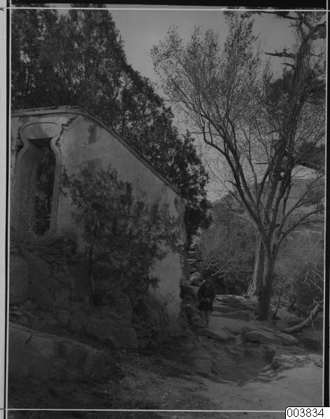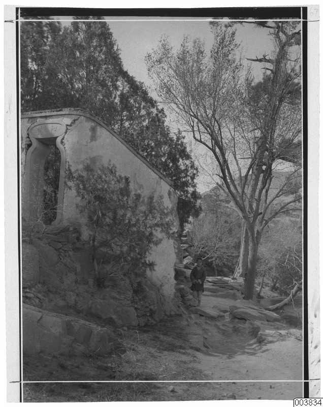 - Enligt text under Pl. 67 Kinas trädgårdar Vol. I: Stigande mur med ornamental port vi Jadekällans park, nära Peking.