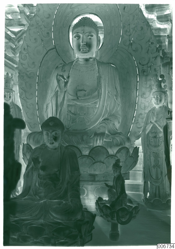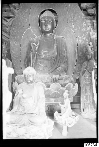 Skulpturer bl. a sittande Buddha, stående Bodhisattva.