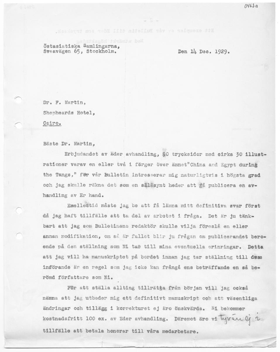 Martins tidigare samlingar har delvis övergått till Nationalmuseum, Naturhistoriska riksmuseets etnografiska avdelning och enskilda samlare (professor Hjalmar Sjögren, direktör Carl Robert Lamm med flera). De var till sina betydligaste delar exponerade vid Stockholmsutställningen 1897 i en särskild paviljong. Martins sedermera gjorda samlingar, bland vilka märks sasanidiska metallkärl, egyptisk keramik från alla åldrar, värdefulla arabiska och persiska manuskript och miniatyrer (de äldsta från 700-800-talen), bokband, orientaliska äldre mattor och andra textilier, jordfunna kinesiska bronser, seldjukiska smycken, var till en del utställda vid den stora utställningen med islamisk konst i München 1910, för vilken Martin var kommissarie och till vilken han även, jämte Bürkel och professor Friedrich Sarre, uppgjort planen. Jämte Sarre utgav Martin 1912 ett ståtligt planschverk med text om utställningen, Meisterwerke muhammedanischer Kunst. Ett större arbete på engelska, Persian Miniatures Art, utkom även det 1912. (wikipedia, 2013-01-31)