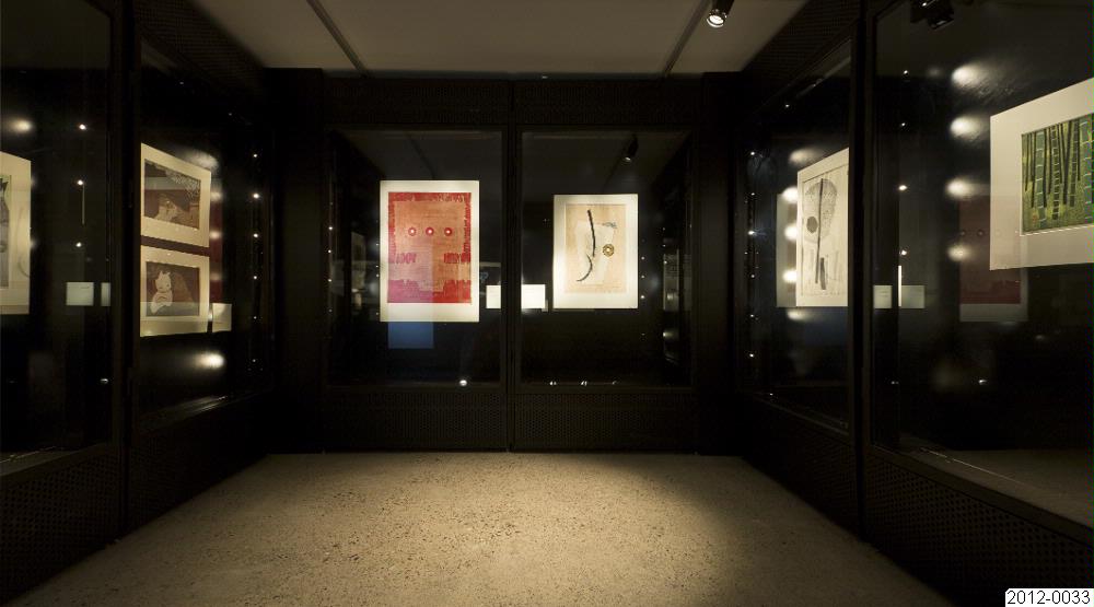 Bildvägg med träsnitt. Galleriet består av flera montrar, 31-34. Föremålen och innehållet byts ut löpande. De olika utställningar/teman som visats här har även registrerats som enskilda utställningar.