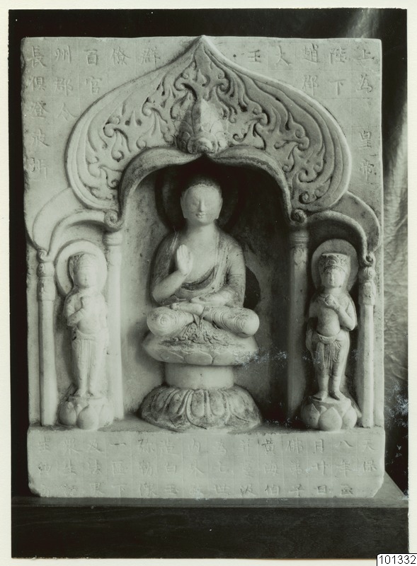 - Bild ur mapp med sittande Buddha märkt "Sculpture 23 China Buddha Seated N.Ch´i N. Chou Sui".