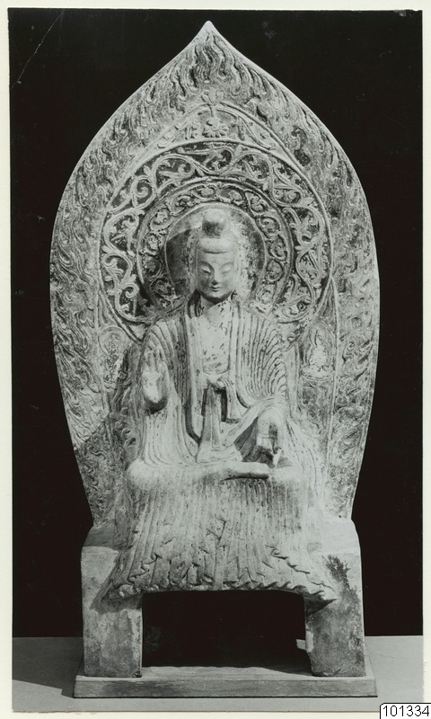 - Bild ur mapp med sittande Buddha märkt "Sculpture 23 China Buddha Seated N.Ch´i N. Chou Sui".