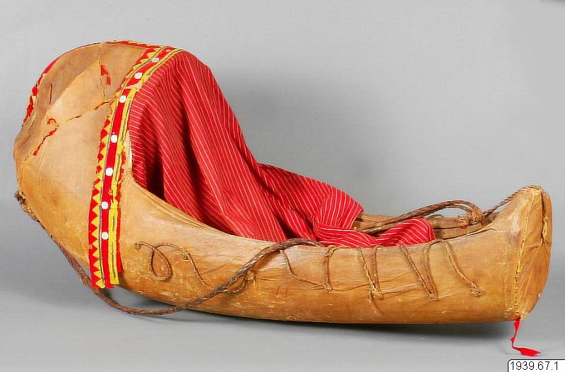 Barnet tillbragte sitt första levnadsår i vaggan. Den hade en form som gjorde det lätt för modern att amma spädbarnet utan att behöva ta ut det ur vaggan. Detta var viktigt främst under vandringarna på vintern. Därför var vaggan också bäddad på ett sätt (antagligen med lav och kanske även med skohö) som skulle hålla värmen, men också lösa problemet med barnets avföring på bästa sätt, så att man inte mitt under vandringarna behövde ta ut spädbarnet i den isiga kylan. Vaggan tålde, enligt Elgström, till och med att stå med fotändan nedstucken i snön, utan att barnet fick frostskador.