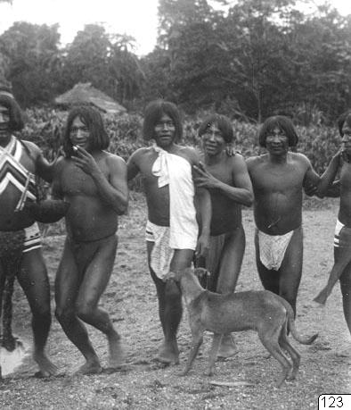 Dansande män. Se Nordenskiöld: Indianerna på Panamanäset. Sthlm., 1928, bild 71.