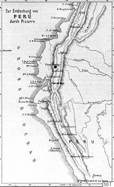 - Sydamerika. Karta över Perus upptäckt av Pizarro. Efter tyskt arbete.