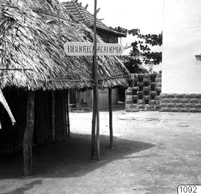 Internado Claret i Narganá. " Biblioteket " var dock knappast något sådant, några indianer hade satt upp skyltar mera på skämt.