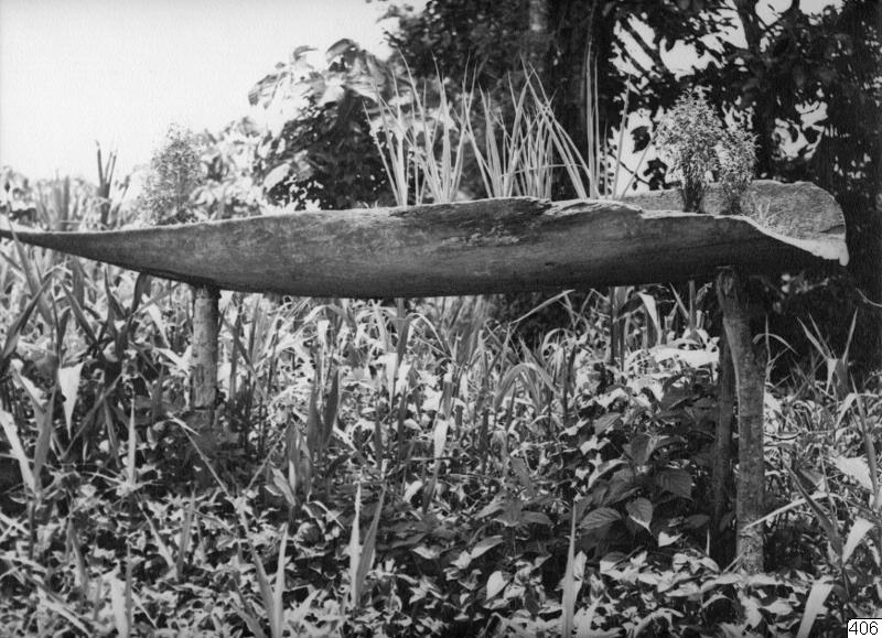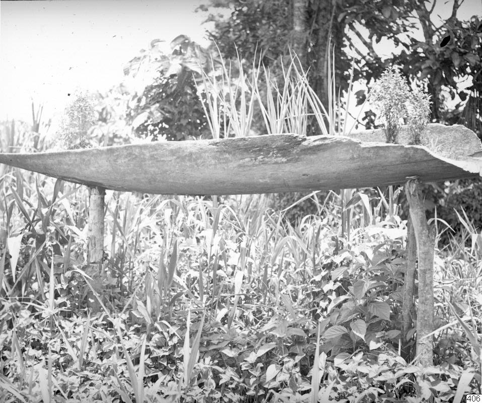 - Kasserad kanot på stolpar som "trädgård" för diverse växter. gammalt bruk hos Chocó. Kliché; 001261. Wassén: Notes on Southern Groups of Chocó Indians etc. (Etn. Studier,1, Gbg. 1935), fig .6. Ibid. i "Jorden Runt", febr. 1936, Sthlm. sid. 90. Först. till museet. (katalogkort).