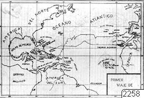 - Karta över Kolumbus första resa 3.8.1492 - 4.3 .1493. Ur Toro: Historia Colonial de la America Espanola. Tomo I: Los viajes de Colón. Mexico 1946. / Kòu /, vid sid. 225.