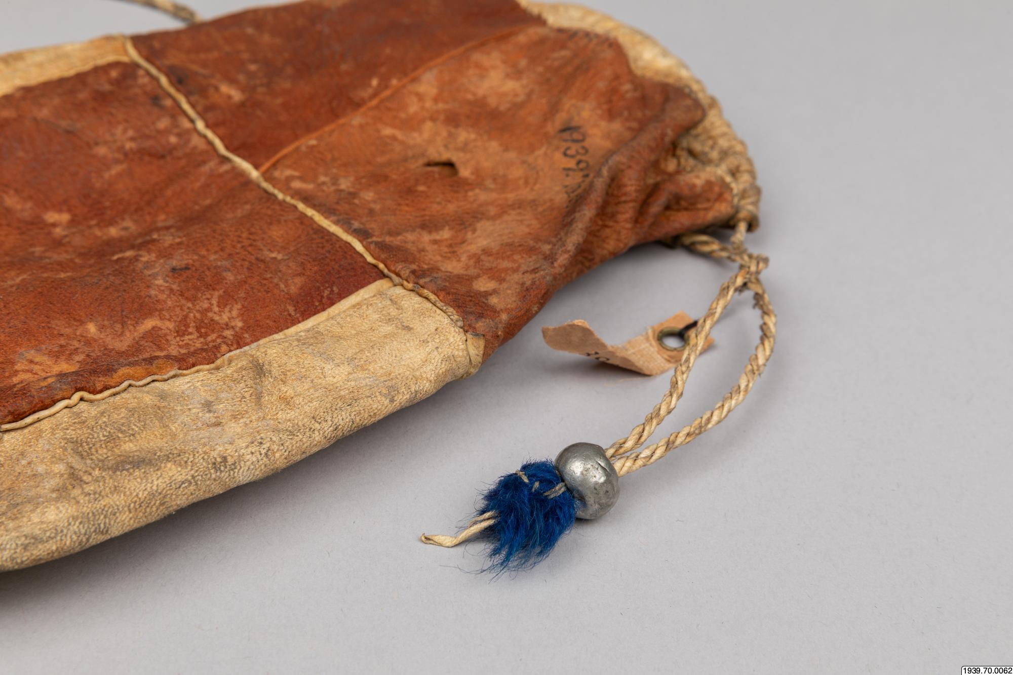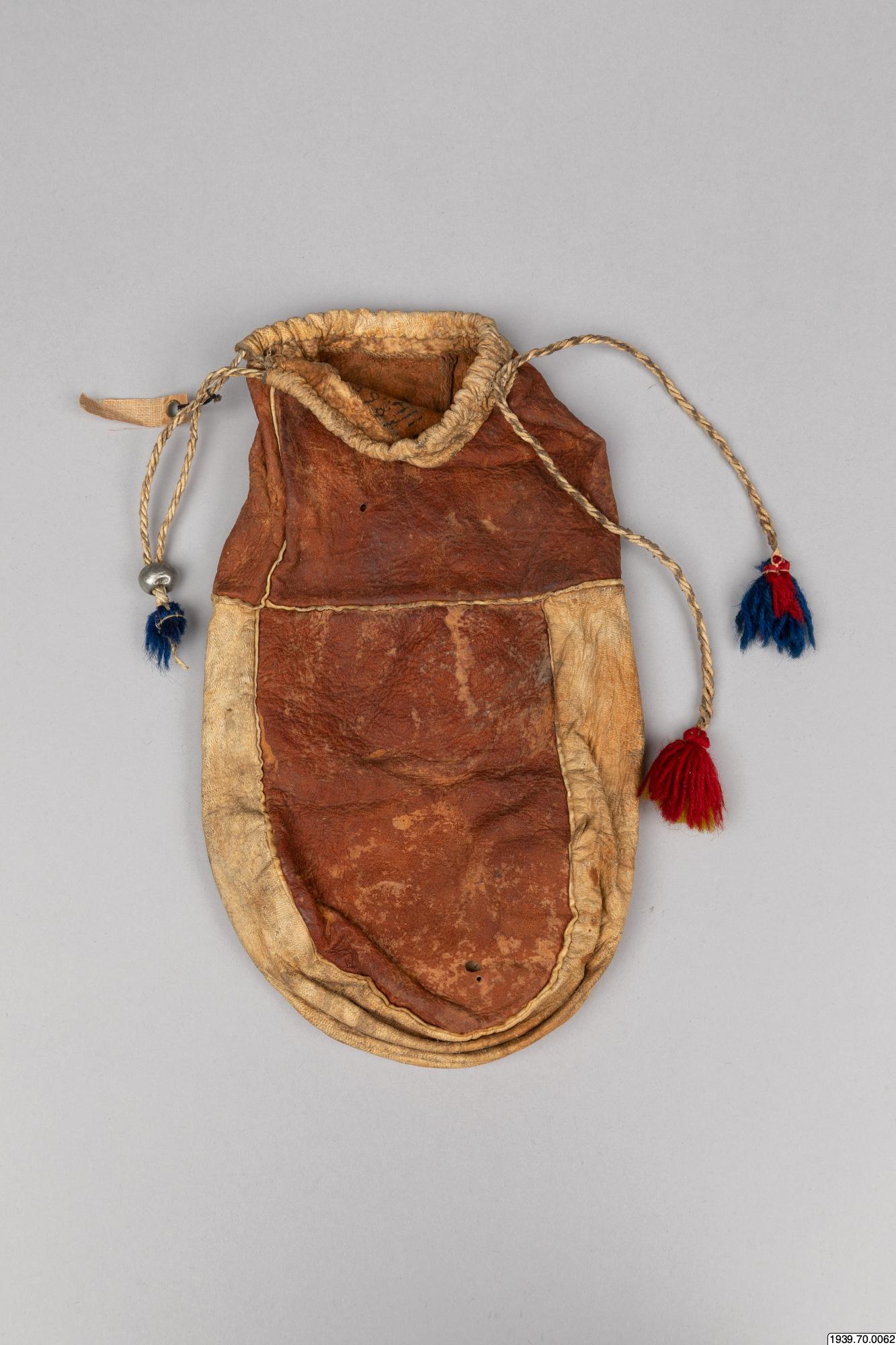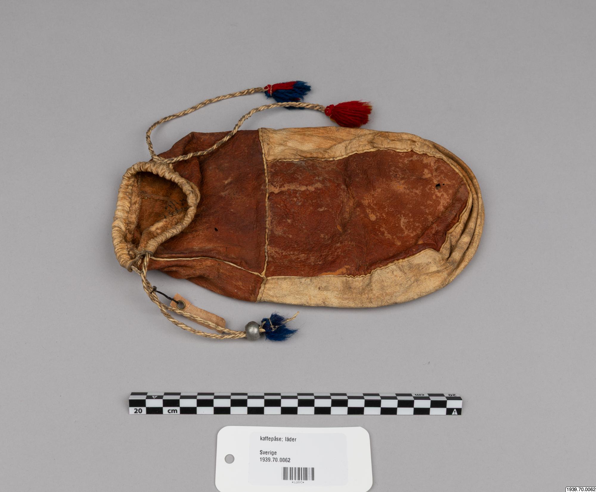 - Kaffepåse av skinn (3987). (katalogkort/originalbeskrivning)