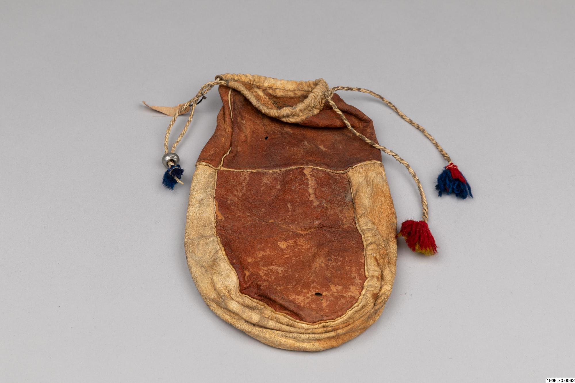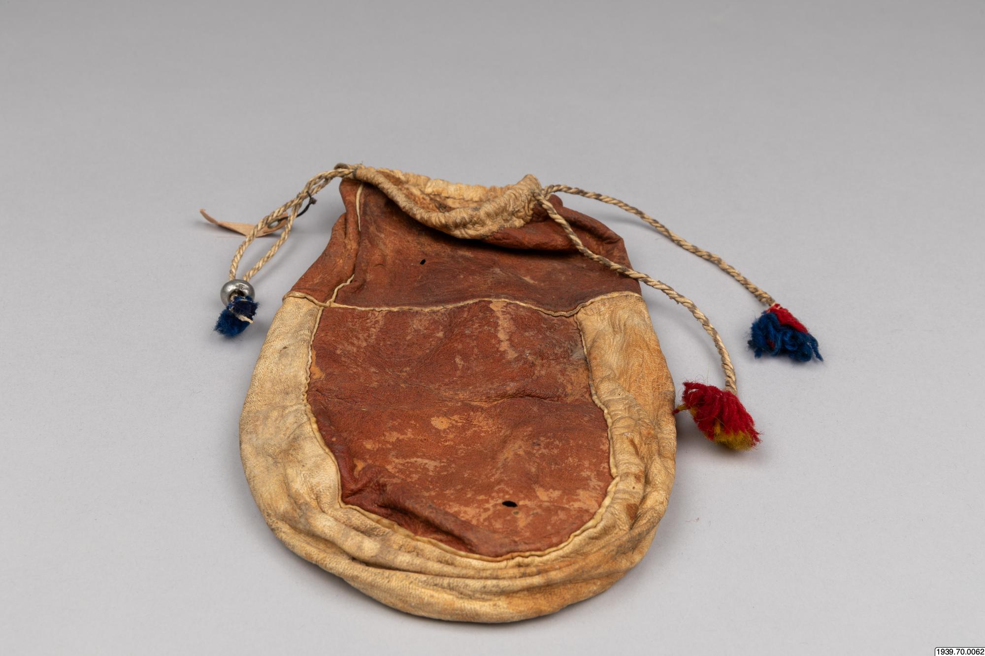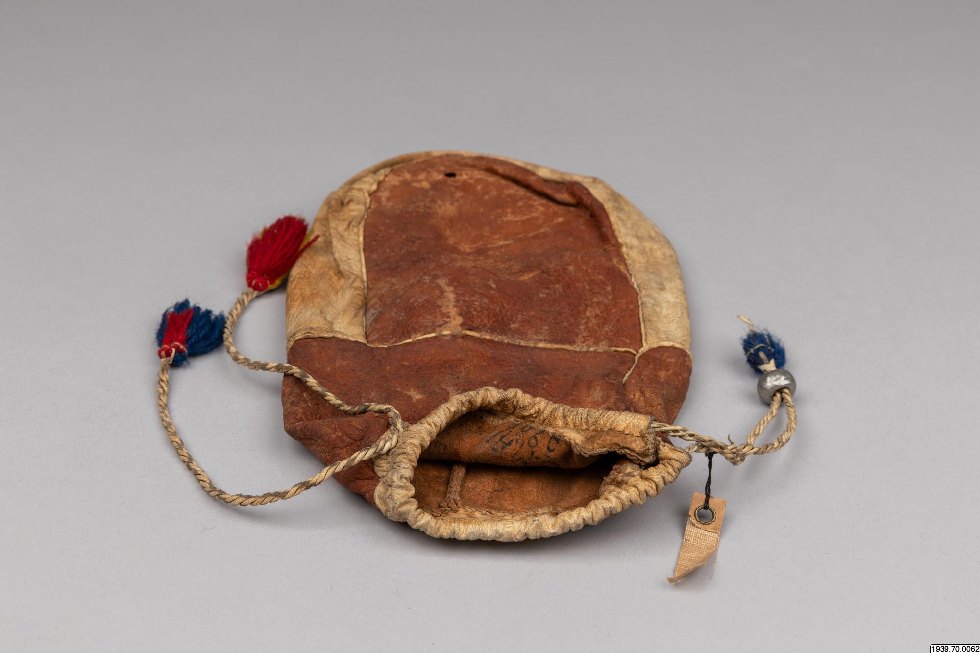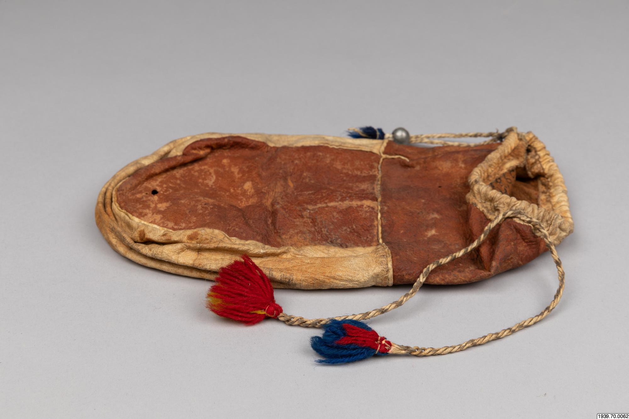 - Kaffepåse av skinn (3987). (katalogkort/originalbeskrivning)