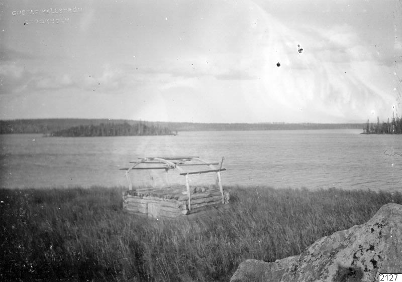 Fiskkällare och stomme till bod. Fotografi erhållet genom köp av fotografen Gustaf Hallström.