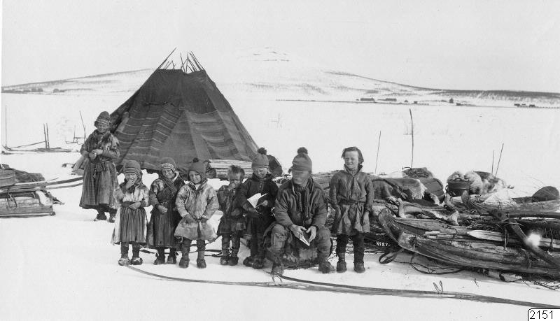 Kopia. Lappmannen "Pappianti" undervisande barn i läsning.