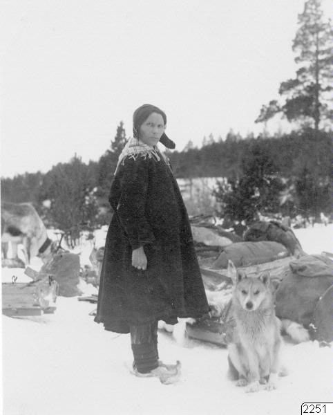 Kopia. Angeli, på gränsen mellan Norge och Finland. Lappkvinna. Dessa begagna här aldrig bälte om livet, ej heller förkläde.