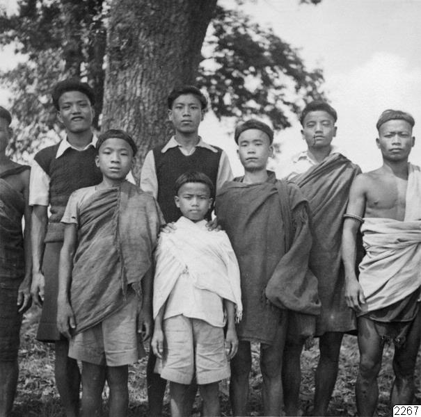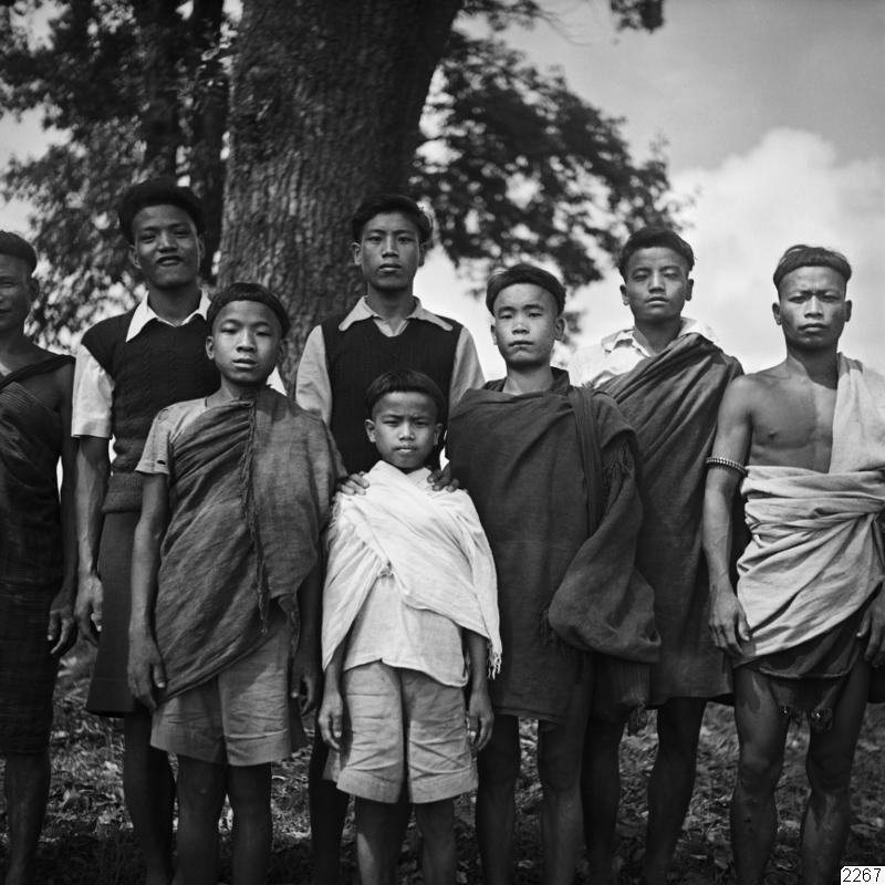Impur, Naga Hills, söder om Dikhufloden, Assam. Skolpojkar i en missionsskola.