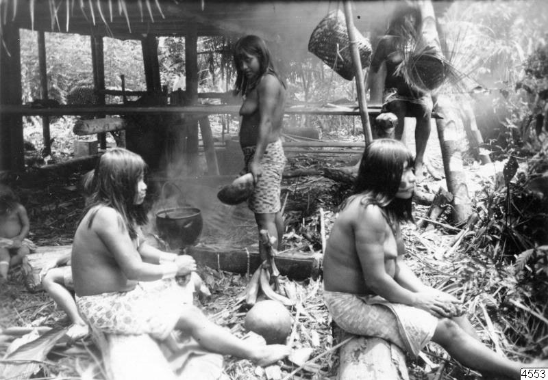 - Ett av tre fotos med motiv från Empera-Chocó: Vid hydda. Foto: Kjell von Sneidern, El Tambo Cauca Colombia, 1940. Erhållen från Henry Wassén 1941-07-31. (katalogkort).
